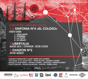 A l’occasion d’un concert magnifique à la halle aux grains le 13 avril 2018, dont vous trouverez la superbe critique ICI, le cd « Road TWO Kerkrade » est sorti. Le programme qui a permis à l’orchestre de finir 3ème au WMContest de Kerkrade est gravé, avec le magnifique danzon n°2 de Marquez, et la très belle interprétation de Libertalia de Maxime Aulio par Hélène Escriva.